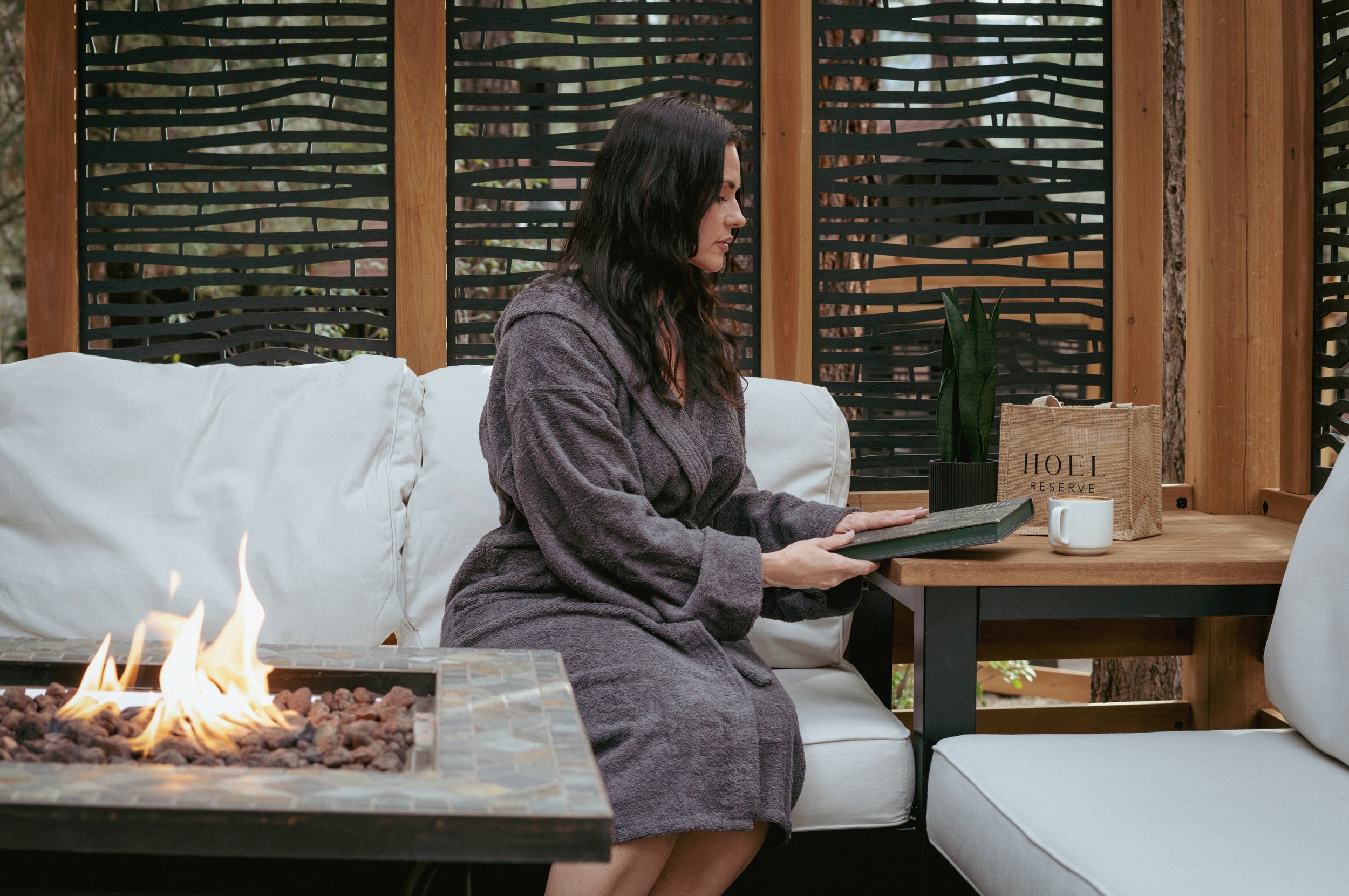 Every detail at Hoel Reserve is crafted for effortless leisure, making it a resort unlike any other. Thoughtful amenities—including private gazebos with built-in lounges and fire pits, indoor sofa lounges, secluded outdoor spaces, fully equipped kitchens with utensils, keyless entry, Wi‑Fi, TVs, robes, warm accent blankets, luxury bath amenities, and plush linens and towels—ensure every stay blends comfort with indulgence.